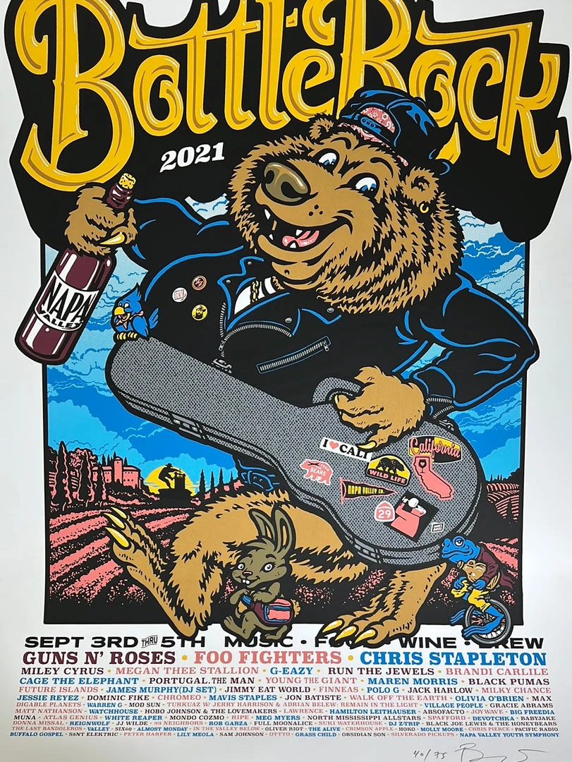 Type: Limited edition screen printed poster hand signed and numbered out of 75