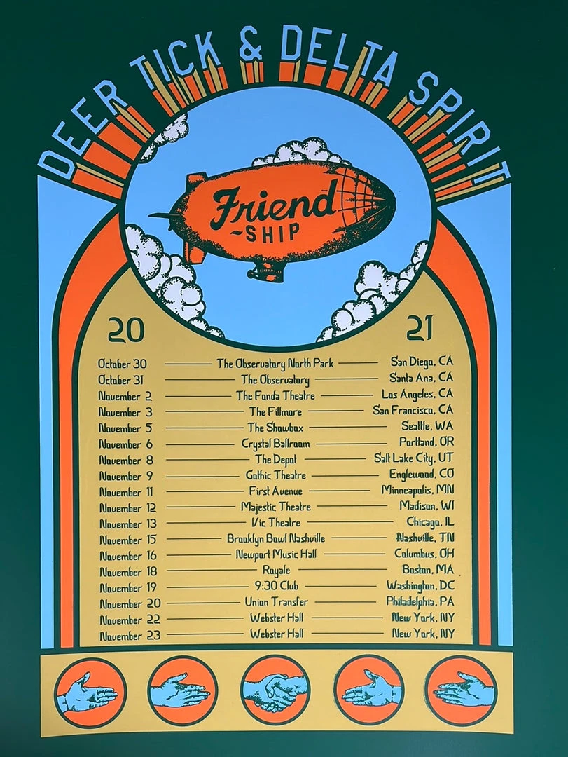 Gig Posters Deer Tick & Delta Spirit – 2021 Matt Cliff Poster Friend Ship Tour Print